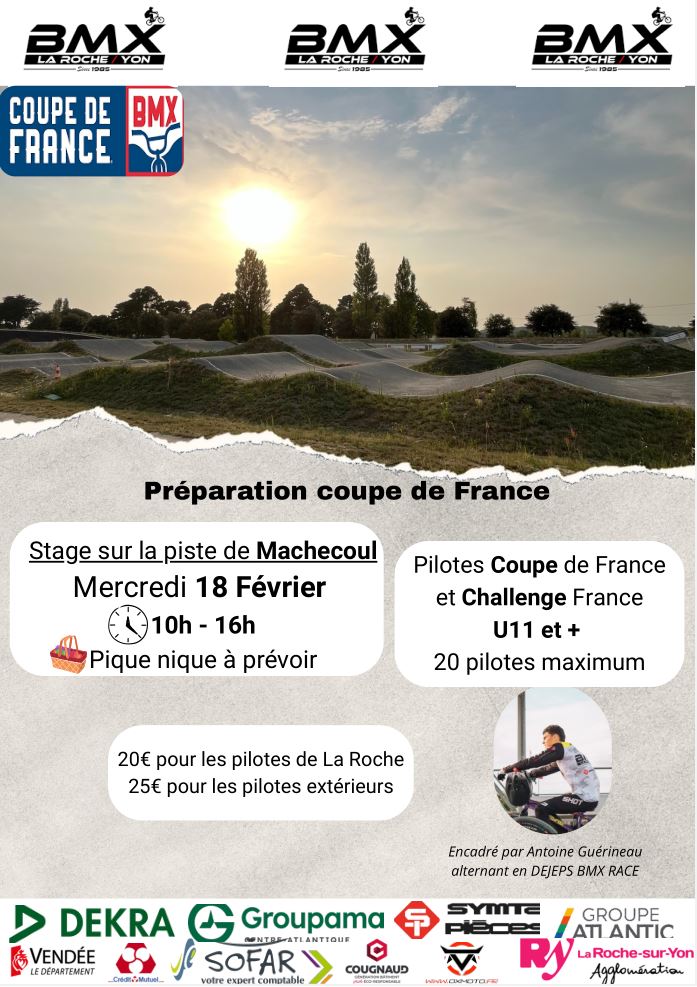 Le club de La Roche-sur-Yon invite ses pilotes à participer au stage de préparation à la coupe de France à la piste de Machecoul (44). 🍔 Pique-nique à prévoir 📄 Consultez les infos sur l'affiche ici : 👉 Inscriptions uniquement via HelloAsso :🔗